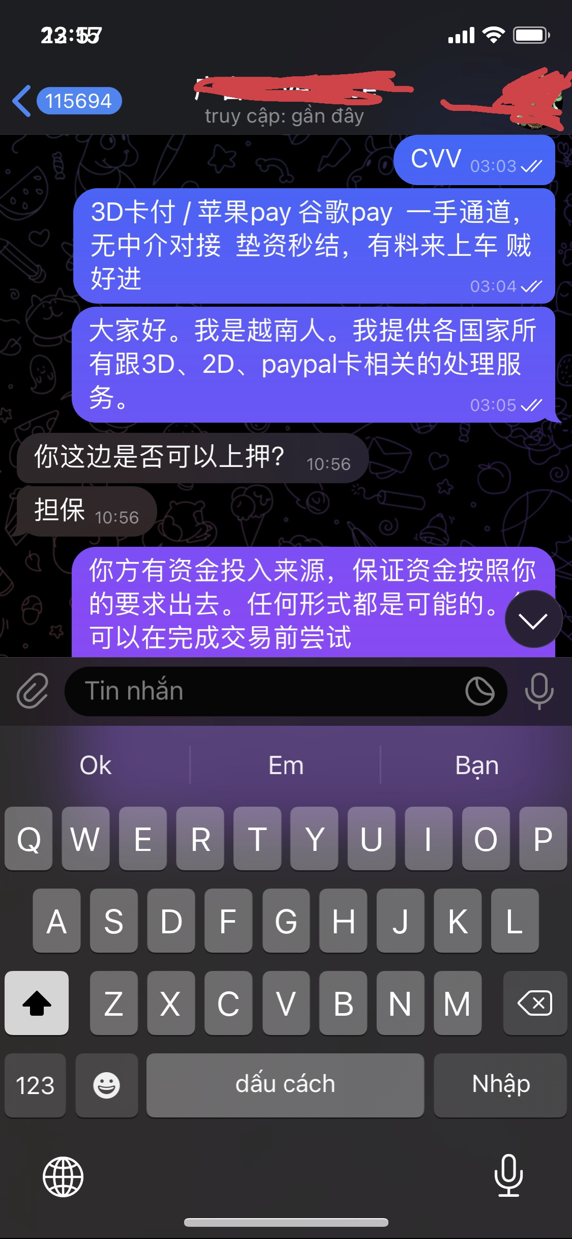 Cung cấp làm tín dụng cho ae từ bank hạn mức thấp cao theo yêu cầu đủ cả. Xử lý đầu tiền 2D, 3D trên các quốc gia Rút tiền paypal , merchant …. Qui đổi usd, Usdt .., các thể loại. Bán các loại dolar Sing giá trị cao với mức hạt rẻ cho ae có nhu cầu mua . Bên ae có trữ lượng vàng lớn cần giao dịch thì vào việc luôn. Ae có gì cần cứ hú tele trao đổi nhé. Thank ae.