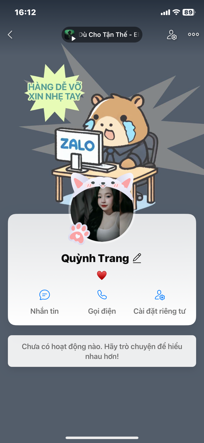 Rồi chuyện nó mới bắt đầu từ đây, nhỏ nói: "Anh có nhìn thấy cặp đôi đang ngồi ở góc kia không, thằng kia nó là người yêu em". Tao quay qua nhìn, thấy một thằng mặt mũi cũng tạm, đang ôm ấp con bé khác, mồm hai đứa thì đang cắn hạt dương rồi cười cười với nhau rất là tình tứ. Tao nghĩ bụng: “Thôi dm quán lần này xong rồi, quán nào không vào lại vào bắt ghen đúng quán mình, không biết nó có đập quán mình ra không?”