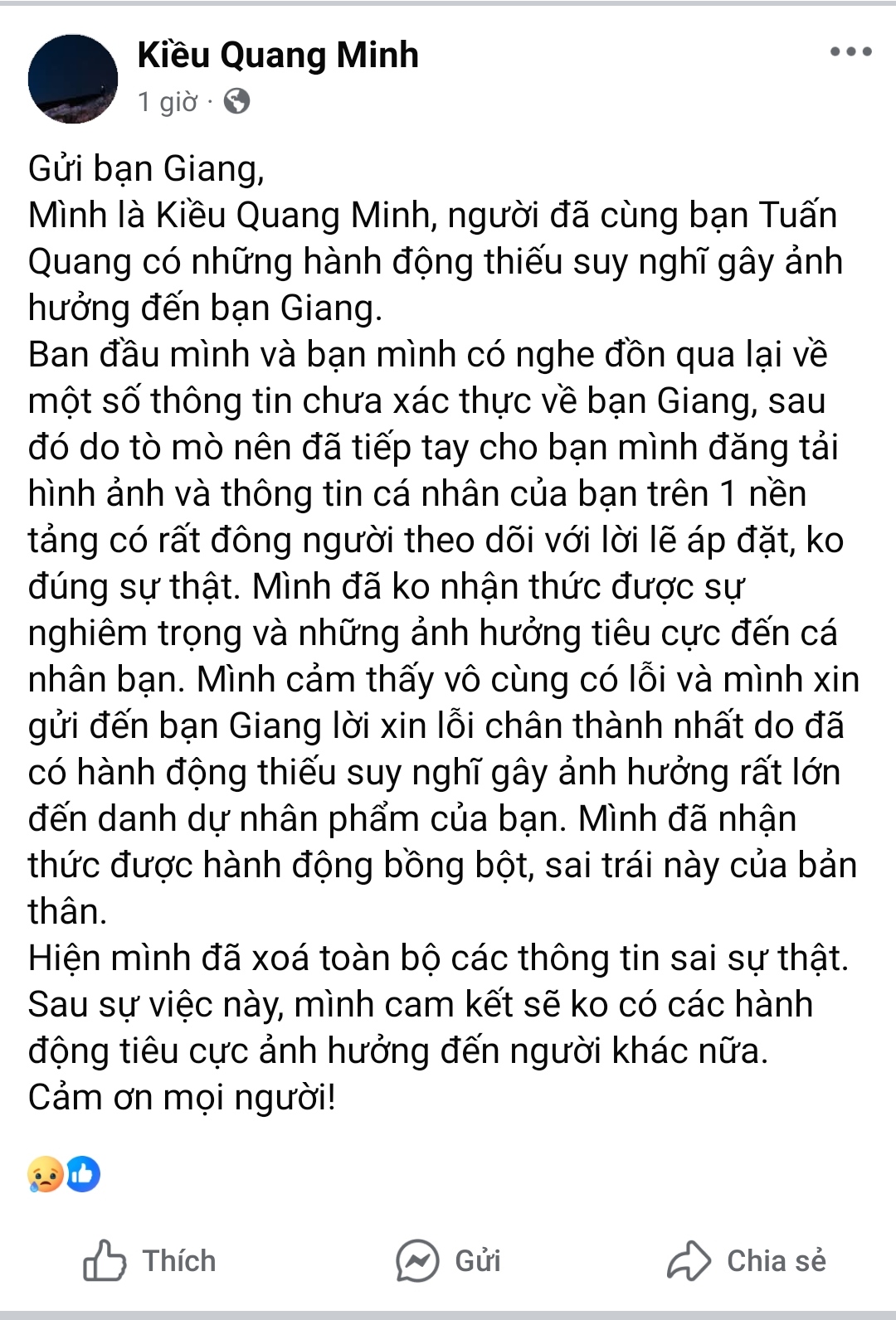 Đăng bài còn để đứa đăng nó phát hiện ra người đăng là ai thì m lên chết đi. Xong lại còn lên bài xin lỗi nữa, đúng là quốc nhục của xamvn khi có 1 thành viên ngu như nóĐúng rồi, th cò n chụp màn fb có cả cái avatar của nó. Thế là ae xàm truy ra và tràn vào đấu tố nó. Chết moẹ n đi.cái bài đặng giang học neu hả thớt![]()