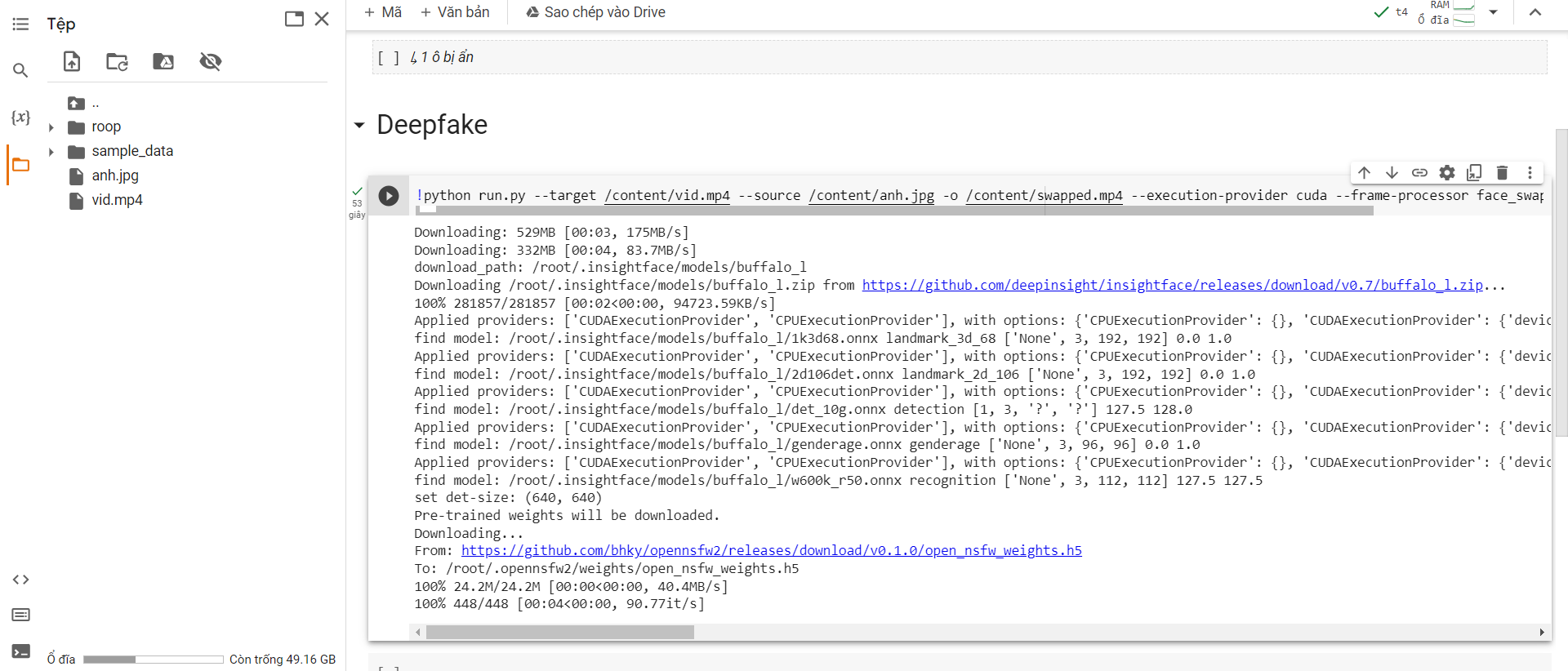 B1: chạy Clone roop repo and install dependencies