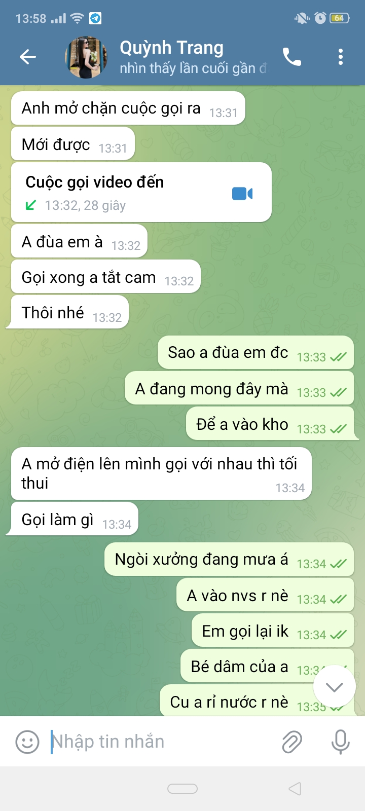 Tele thì 99% lừa Tống tiền. Thg em tao ngu dính r. Thiếu lol gì mà phải chát sex sóc lọ. Ngon đến lượt mày ah