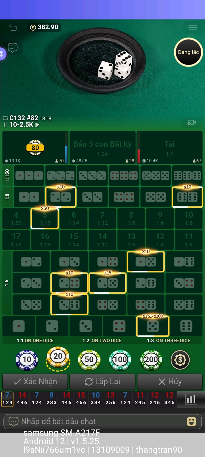 Mấy hôm nay bên sexy ko thấy có baccarat nên tao vào tài xỉu giải trí vài chục ka cho vui.Ngay ván đầu tiên nó xóc ra hột xí ngầu ko có số luôn,cắt ghép video lỗi, đúng là bịp,sau đó nó ghi xóc lại lần nữa.Thằng nào chơi lớn thua ván này chắc cay dái với nó luôn