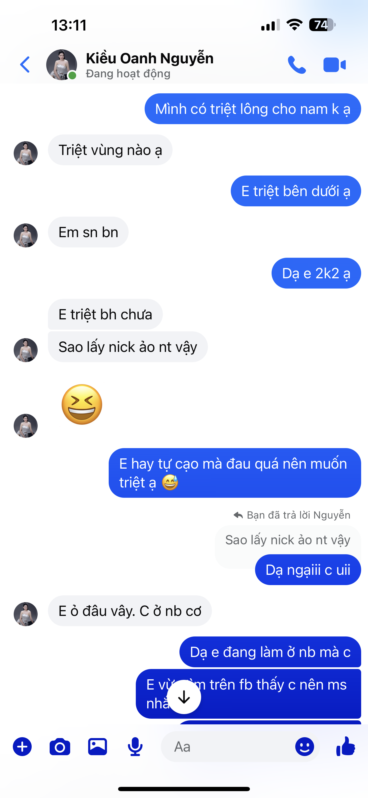Haha kiều tiến dân chơi 1 thời tưởng aiĐây tml. 400k/buổi. Theo liệu trình rẻ hơn. T vừa lấy nick ảo inbox thử