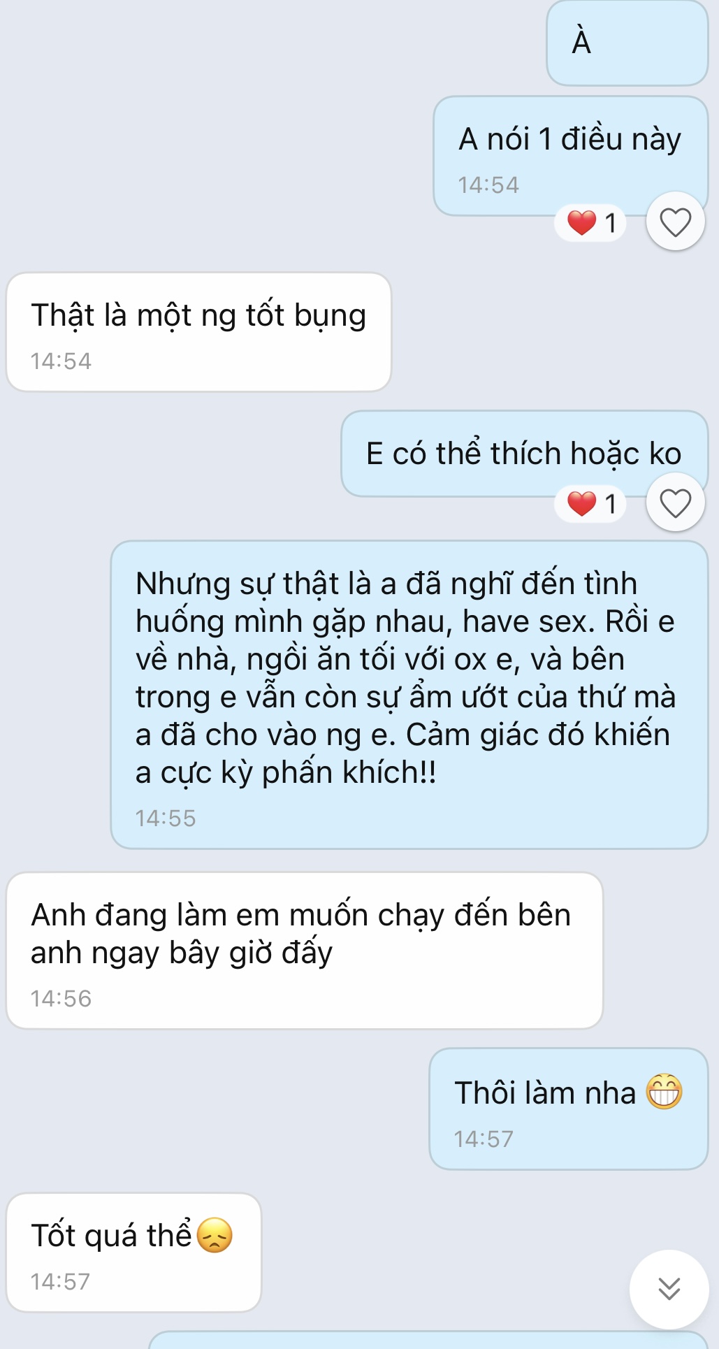 đaqửng câopsVắn tắt thế này. Từ lúc ae tao đi nhậu ở quán con bé này. Nó và chồng nó làm chủ. t xin số về nt. Tầm bữa 2 bữa nt, t uống mấy li bia vô, nt bậy với nó, a muốn đụ em, muốn bú lồn em, do trc đó t có nt kêu e đẹp, a thích em, mà nó cứ cười, rồi cảm ơn.. lúc nói muốn đụ nó kêu a đừng nói vậy./ Đến hôm sau thì t rủ cf, nó đi rồi.
