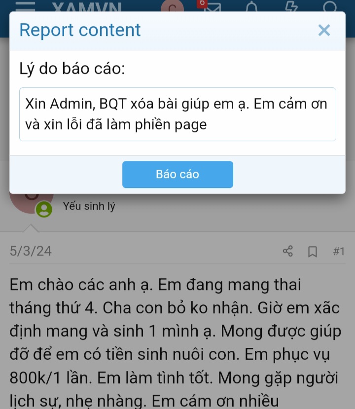Em đang xin được xóa bài ạ