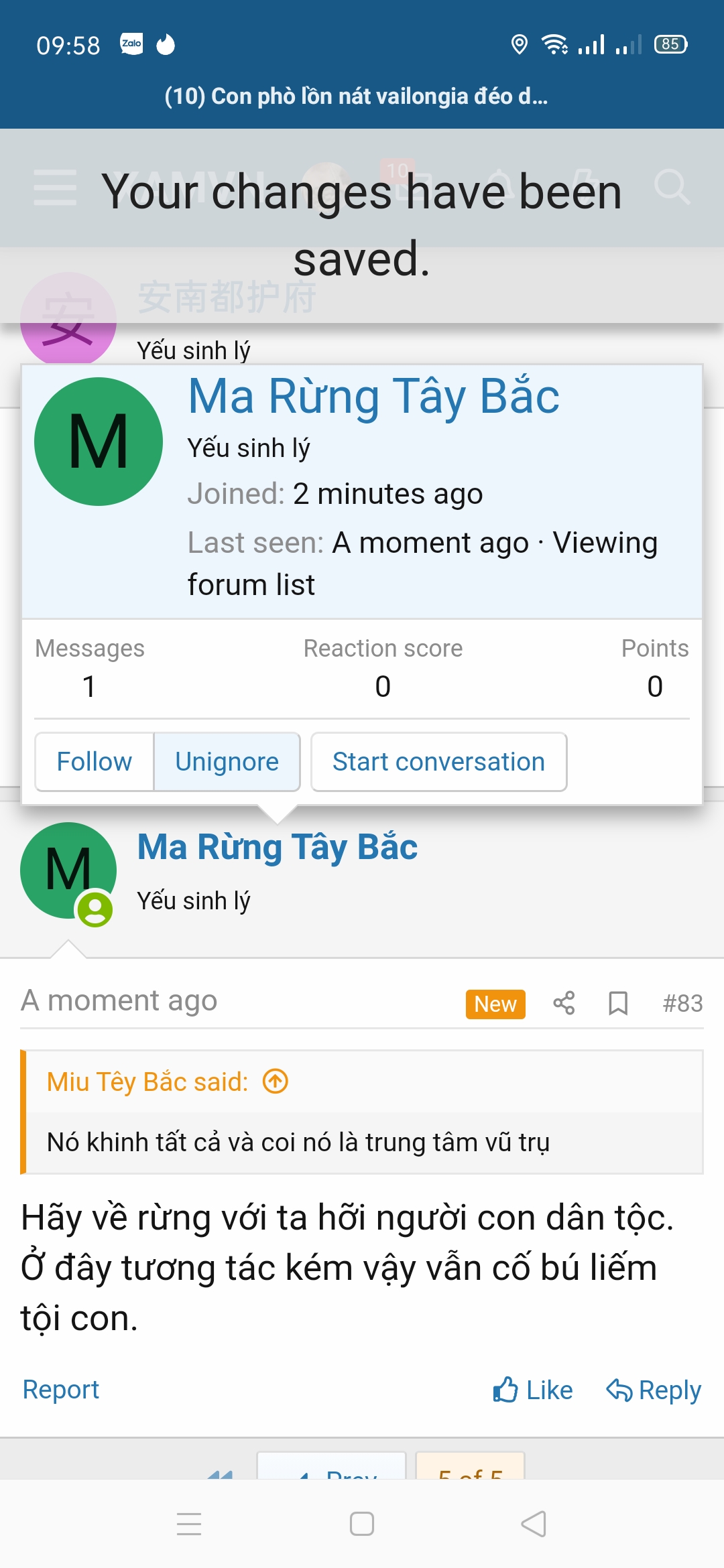 Hãy về rừng với ta hỡi người con dân tộc. Ở đây tương tác kém vậy vẫn cố bú liếm tội con.Nó khinh tất cả và coi nó là trung tâm vũ trụ