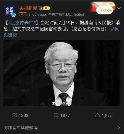 Thằng già Tập với thằng ml đầu bạc khác đéo gì nhau. Thằng Tập tuyên bố chống tham nhũng "không có vùng cấm" từ 10 năm trước, kết quả là gì? Là thằng tổng trưởng ngoại giao, quốc phòng, tư lệnh tên lửa chiến lược- đều là "cán bộ nguồn" do Pác Tập dìu dắt- vừa mới dắt tay nhau vào Tần Thành ngày hôm nayBáo chí Trung Quốc đưa tin nhiều về sự ra đi của Tổng bí thư Nguyễn Phú Trọng. Vị trí cao nhất của tin tức này là thứ hạng 13 trên BXH từ khóa Weibo trong tối nay.
